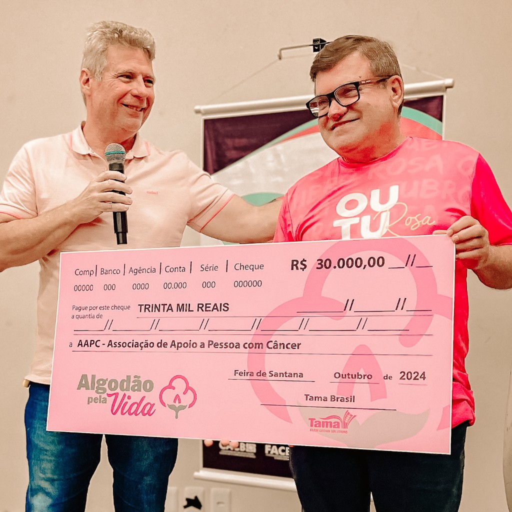 A Tama Brasil vai além da inovação no agronegócio e assume um forte compromisso social. Por meio da campanha Algodão Pela Vida, a empresa promove ações de conscientização sobre a prevenção do câncer de mama e realiza doações para instituições que atuam diretamente no apoio a pacientes e no combate à doença. Com a participação de parceiros do setor agrícola, a Tama Brasil mobiliza produtores e colaboradores para reforçar a importância do diagnóstico precoce e do acesso a tratamentos adequados.